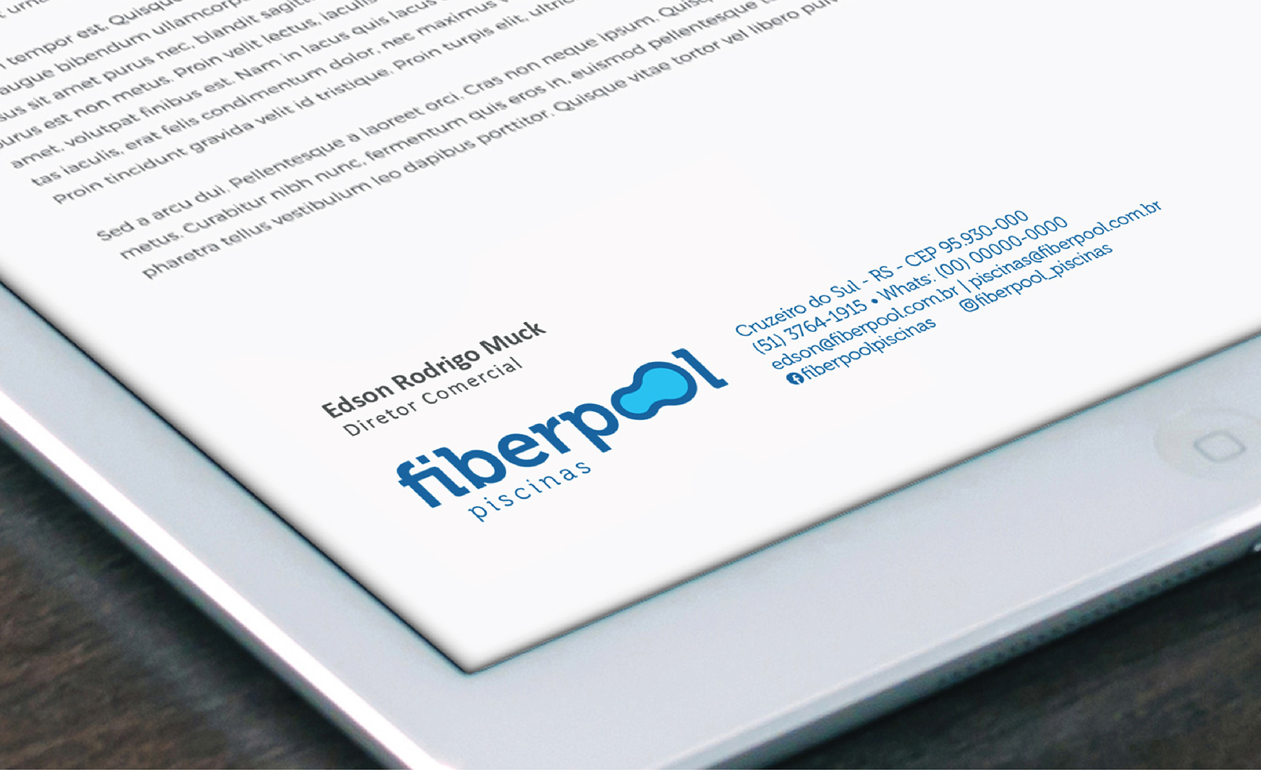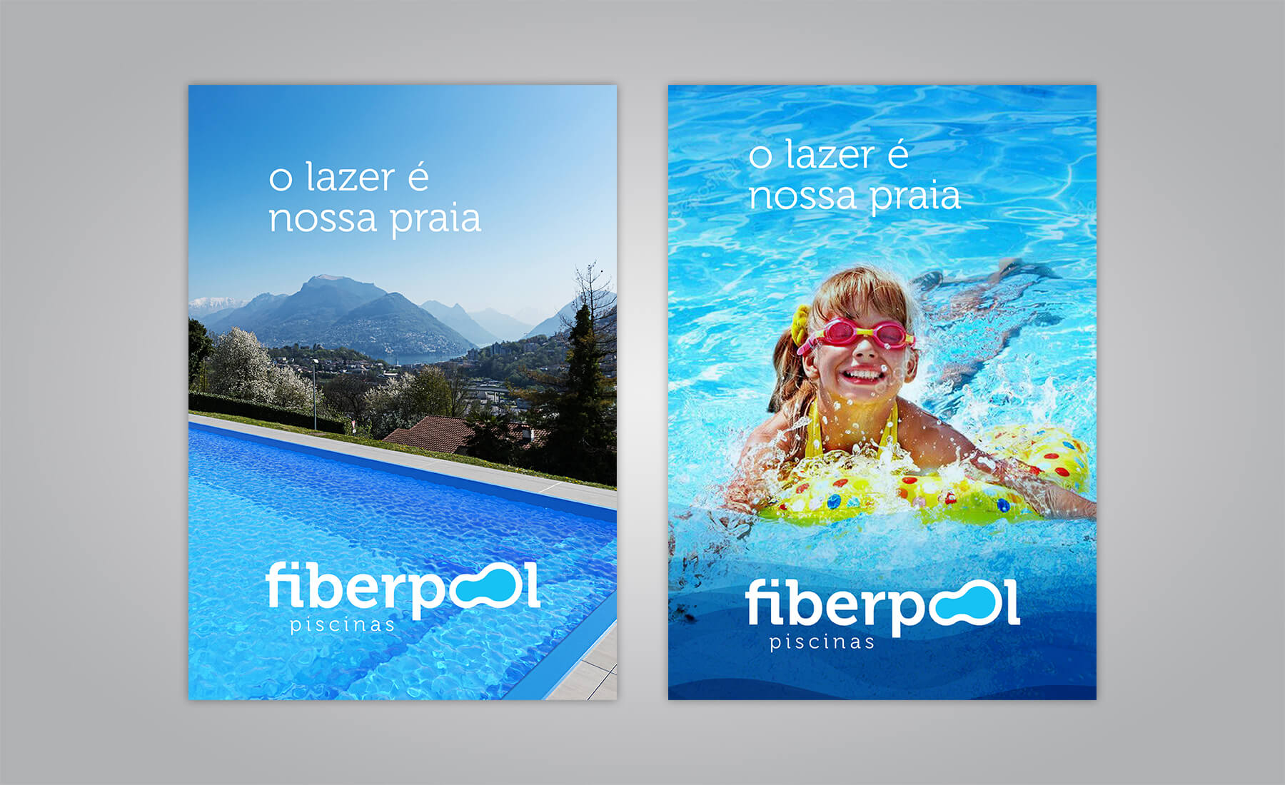 A marca Fiberpool usa como referência visual o próprio produto, uma piscina que se integra perfeitamente ao lettering, formando as duas letras “O” da palavra POOL, e deixa bastante clara a área de atuação da empresa. As cores também são adequadas ao segmento, inserindo-se de forma eficaz no mercado. Sintética, limpa e ao mesmo tempo forte e personalizada, a marca FIBERPOOL transmite a classe e a qualidade de seus produtos.